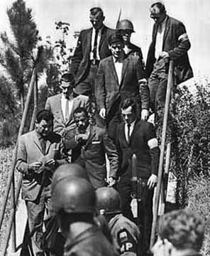 U.S. Air Force veteran James Meredith was the first black student to enroll at the University of Mississippi, in 1963. When Meredith first tried to attend classes at the school, a number of Mississippians pledged to keep the university segregated -- including Mississippi's governor. Ultimately, the University of Mississippi had to be integrated with the help of U.S. federal troops. See Oxford Town in the Dylan Atlas.